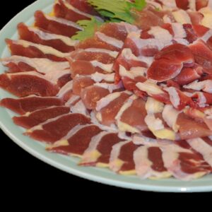 「以前、軍鶏のメニューを出していたお客様なんですが、養鶏場が廃業されて代りを探していたそうです。焼いて美味しい肉が見つからなくて、手箱きじに辿りついたそうです。ここの雉はとても美味しいと料理長が褒めておられました。他所は一羽売りが多いけど、うちは肉とガラを別々で買えるので焼いて使うお客様にも便利な店らしいです。」