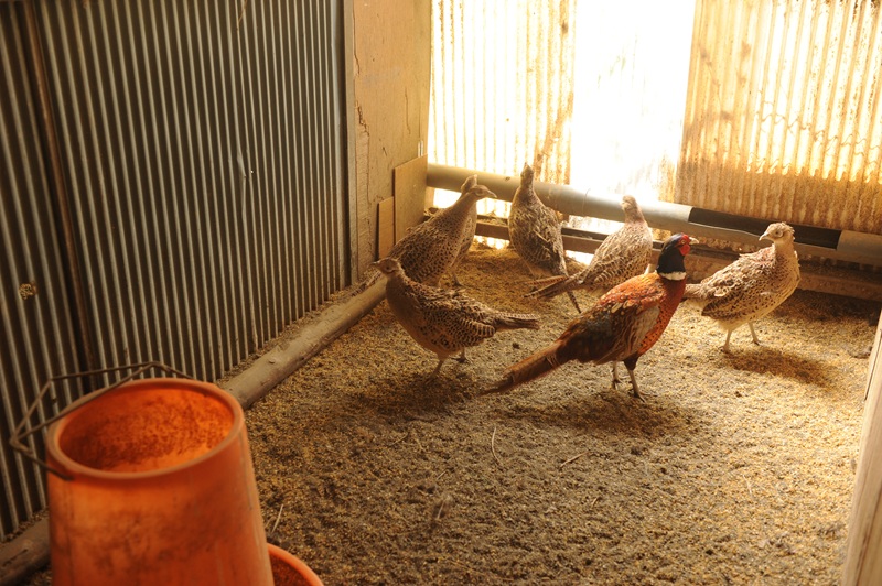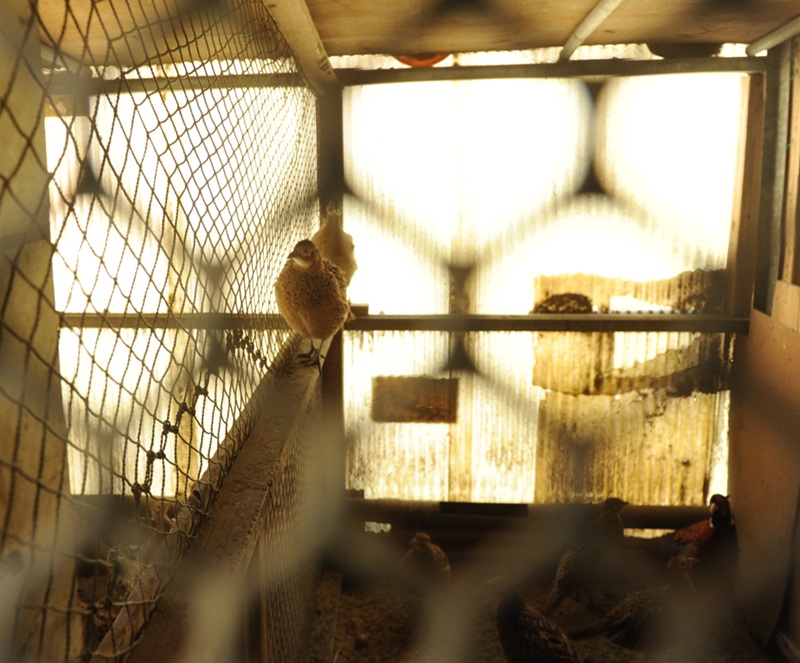 家畜化されたニワトリと異なり、雉はほぼ野生種のため元気すぎて、騒いだり、すぐに飛んで雉舎を縦方向に立体的に使っています。